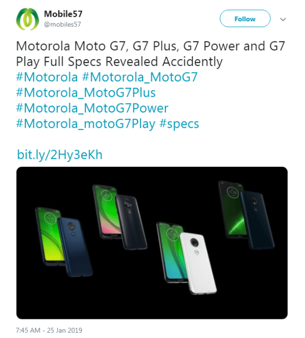 Slučajno ili namerno, tek Motorola na svom zvaničnom sajtu za brazilsko tržište objavila potpune karakteristike svih modela svoje buduće Moto G7 serije pametnih telefona. Iako su, u međuvremenu, informacije uklonjene sa stranice, naravno da nisu ostale i nesačuvane.